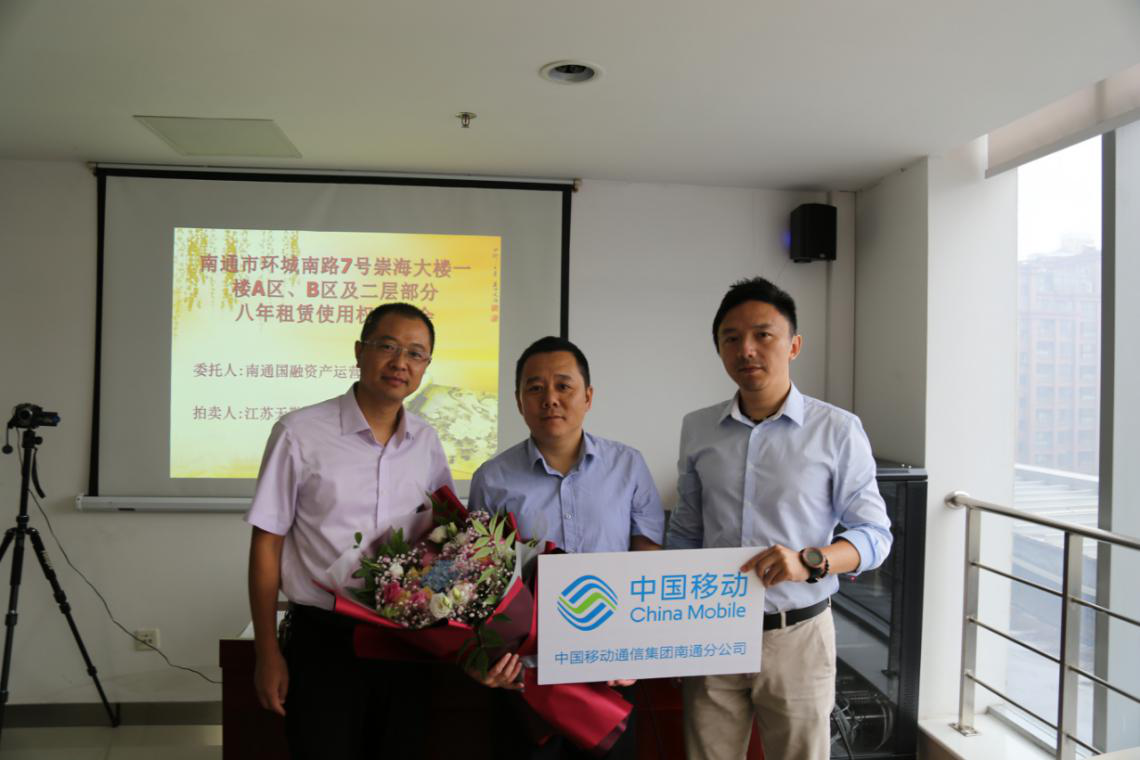 在宣讀了房屋租賃使用權(quán)拍賣的特別規(guī)定等文件并確認各競租人無異議后,現(xiàn)場監(jiān)拍人遞交了本場拍賣會的底價函。經(jīng)拍租,中國移動通信集團江蘇有限公司南通分公司代理人、張家港保稅區(qū)佑福珠寶貿(mào)易有限公司代理人分別拍中崇海大樓A區(qū)八年租賃使用權(quán)、B區(qū)八年租賃使用權(quán),并簽署了成交確認書,成交年租金合計達620萬元,八年租金總額達4960萬元。公司領導代表公司向房屋競租人遞送了鮮花表達祝賀并合影留念。統(tǒng)一規(guī)劃,統(tǒng)一布局,統(tǒng)一招租,統(tǒng)一競租,國融公司充分挖掘崇海大樓優(yōu)越的商業(yè)地段和濃厚的商業(yè)氛圍優(yōu)勢,轉(zhuǎn)化為優(yōu)良、持久、高效的經(jīng)營收益,實現(xiàn)了該處資產(chǎn)科學升值。公司將以崇海大樓成功招租的經(jīng)驗為借鑒,繼續(xù)做好所管理國有資產(chǎn)的升級改造,切實履行好國有資產(chǎn)保值增值的職責,推動企業(yè)的高質(zhì)量發(fā)展。