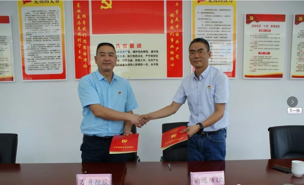 為進一步加強黨建工作,深化黨建工作內(nèi)涵,豐富黨建工作手段,創(chuàng)新黨建工作方式,圍繞中心工作,服務(wù)發(fā)展大局,充分發(fā)揮黨建引領(lǐng)企業(yè)發(fā)展之作用,7月4日上午,南通紡織控股集團紡織染有限公司黨委與浙江萬舟控股集團有限公司黨委在萬舟控股集團黨員活動室簽署了《黨建結(jié)對共建協(xié)議書》。 浙江萬舟是一家以專業(yè)研發(fā)生產(chǎn)時尚面料、紗線為主業(yè),集實業(yè)投資、資產(chǎn)投資、棉花收購、進出口貿(mào)易等多元化綜合發(fā)展的控股集團企業(yè),是省重大產(chǎn)業(yè)項目。旗下?lián)碛姓憬讯兰徔椨邢薰?、浙江蘭棉紡織有限公司、浙江萬舟進出口有限公司三家子公司。