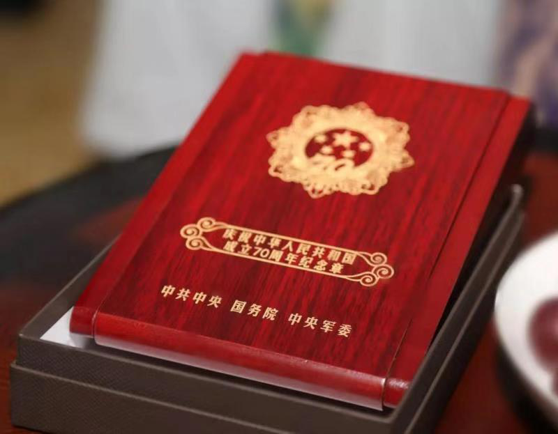 為慶祝新中國成立70周年,南通國融資產(chǎn)運營有限公司根據(jù)產(chǎn)控集團的統(tǒng)一安排,從9月19日開始,由工會主席孫美峰帶隊走訪慰問新中國成立之前參加革命工作、目前仍然健在的國融資產(chǎn)離休老干部。 本次走訪慰問活動恰逢祖國70周年喜慶,中共中央、國務(wù)院、中央軍委為老干部們制作了“慶祝中華人民共和國成立70周年”特制紀念章。紀念章使用銅胎鍍金材質(zhì),通徑為50毫米,主要元素為五星、“70”飄帶、團錦結(jié)、如意祥云和光芒,主色調(diào)為紅色和金色?!?0”飄帶象征中華人民共和國70年奮斗歷程。章體外環(huán)以如意祥云、光芒構(gòu)成,象征人民對美好生活的向往,同時表達隆重慶祝中華人民共和國生日,禮贊國家富強、民族振興、人民幸福的輝煌成就,以及在70年輝煌奮斗成就的基礎(chǔ)上不忘初心、繼續(xù)前進的堅定決心。每枚紀念章內(nèi)側(cè)均打印編號,每一個編號對應(yīng)每一位離休老干部的名字。