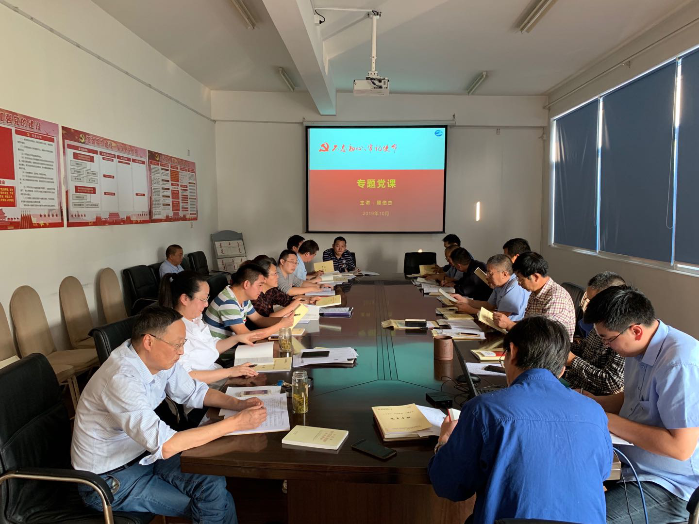 紡織染公司黨委委員顧伯杰對本部黨支部黨員開展“不忘初心,牢記使命”專題黨課