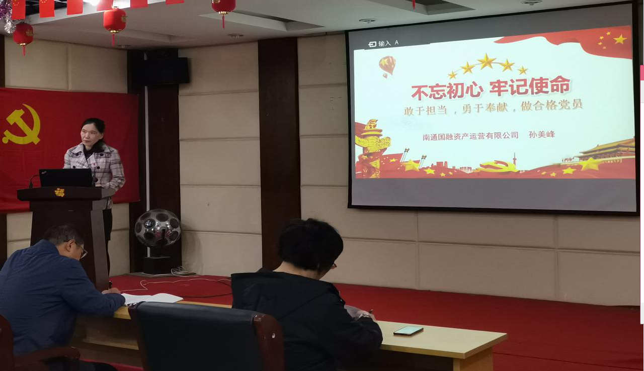 10月24日,南通國融資產(chǎn)運(yùn)營有限公司黨委委員、工會主席孫美峰結(jié)合“不忘初心、牢記使命”主題教育給公司全體員工上了一堂題為“敢于擔(dān)當(dāng),勇于奉獻(xiàn),做合格黨員”的專題黨課。 孫美峰引經(jīng)據(jù)典向大家詮釋了什么是擔(dān)當(dāng)奉獻(xiàn)、共產(chǎn)黨員的擔(dān)當(dāng)奉獻(xiàn)精神、如何敢于擔(dān)當(dāng)勇于奉獻(xiàn)。