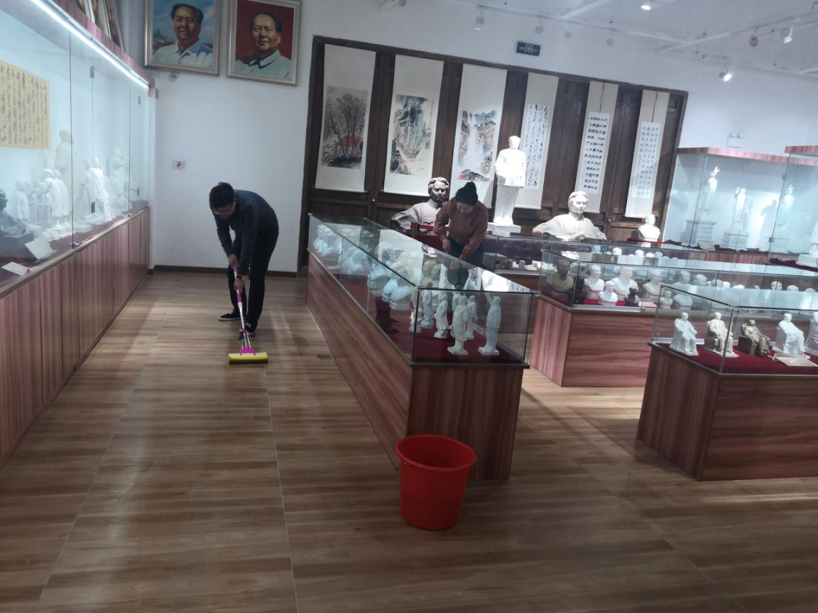 黨員們首先來到毛主席塑像收藏紀(jì)念館參觀學(xué)習(xí)。紀(jì)念館展示了上世紀(jì)五十年代初至七十年代末全國各地制作的毛主席塑像及瓷板畫、瓷擺件等各類藝術(shù)品,這些塑像品種繁多、質(zhì)地精美,惟妙惟肖地刻畫出偉人的精氣神。通過工作人員的介紹,黨員們了解了不同時期、不同造型毛主席塑像的故事和意義,也通過這些塑像更加深入地學(xué)習(xí)了黨史和新中國史。 塑像紀(jì)念館面積600平方米,藏品達(dá)6500件,由館主沈愛國老夫妻倆管理。他們每天都要接待前來參觀學(xué)習(xí)的黨員群眾,近期不少單位在此開展主題活動,他們倆就更忙了,每天僅打掃衛(wèi)生就很不容易。國盛環(huán)境黨支部了解這一情況后,主動組織黨員帶著拖把、水桶、抹布等到塑像館開展志愿服務(wù)。黨員們有的打水,有的拖地,有的擦拭玻璃展柜,大家行動迅速、認(rèn)真細(xì)致、井然有序。國盛環(huán)境黨支部也與沈愛國老人約定,今后館里有什么困難,可以隨時聯(lián)系國盛環(huán)境黨支部幫助解決。
