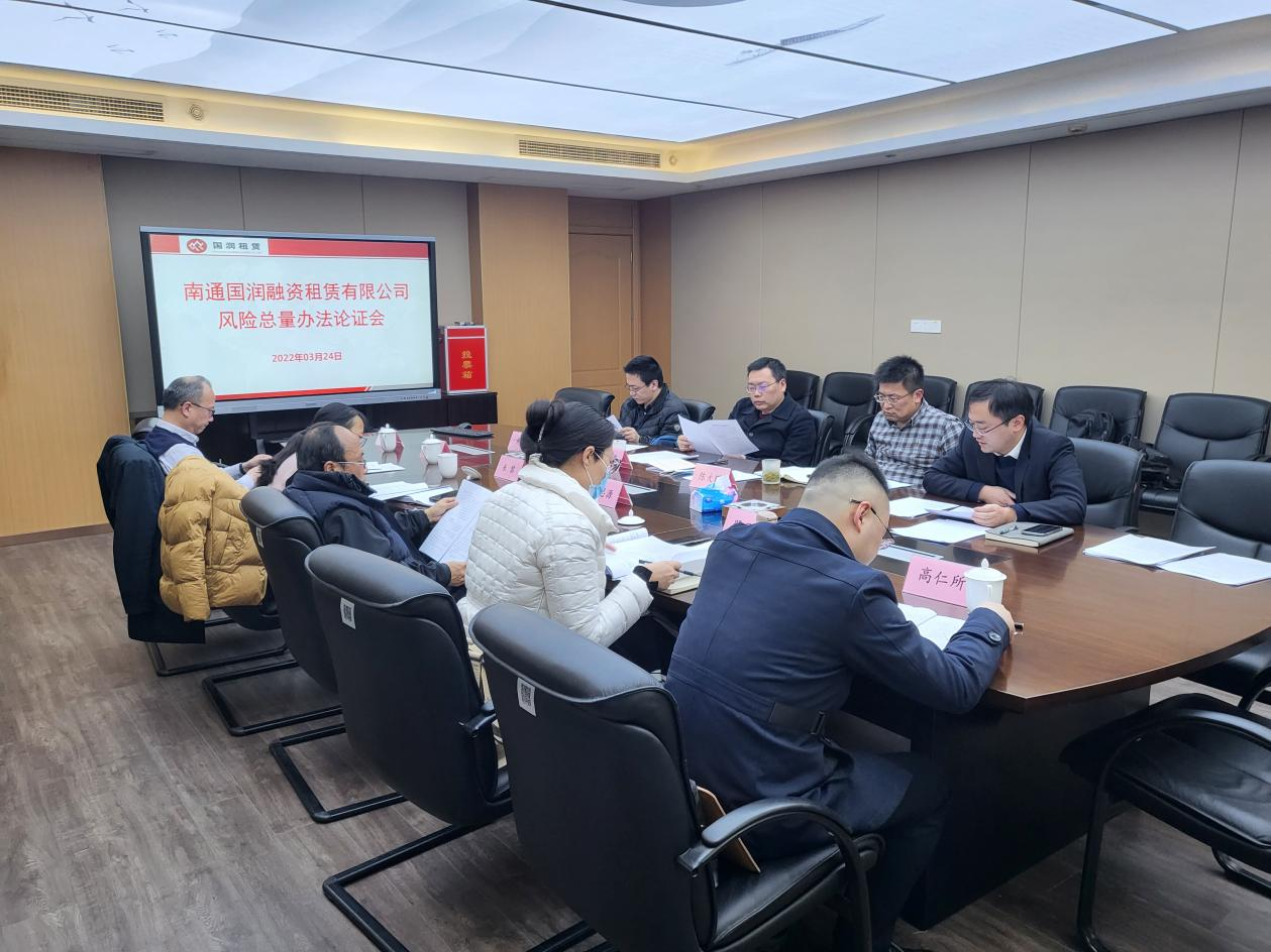 為推動(dòng)公司高質(zhì)量發(fā)展,加快轉(zhuǎn)型升級(jí)、控制經(jīng)營(yíng)風(fēng)險(xiǎn),國(guó)潤(rùn)租賃邀請(qǐng)市金融局、國(guó)資委和銀行、法律等方面專(zhuān)家,共同對(duì)《國(guó)潤(rùn)租賃風(fēng)險(xiǎn)總量管理辦法》進(jìn)行研究論證。