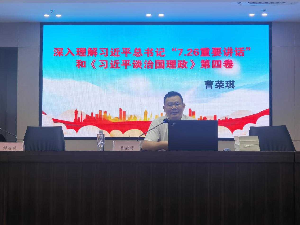 8月30日上午,國(guó)融公司召開(kāi)專(zhuān)題學(xué)習(xí)會(huì)暨主題黨日活動(dòng),學(xué)習(xí)習(xí)近平總書(shū)記“7.26重要講話”和《習(xí)近平談治國(guó)理政》第四卷,邀請(qǐng)南通市通州區(qū)委宣傳部副部長(zhǎng)、新聞出版局局長(zhǎng)曹榮琪作專(zhuān)題授課。學(xué)習(xí)活動(dòng)由公司黨委書(shū)記、董事長(zhǎng)、總經(jīng)理劉海兵主持,全體員工參加了此次學(xué)習(xí)。